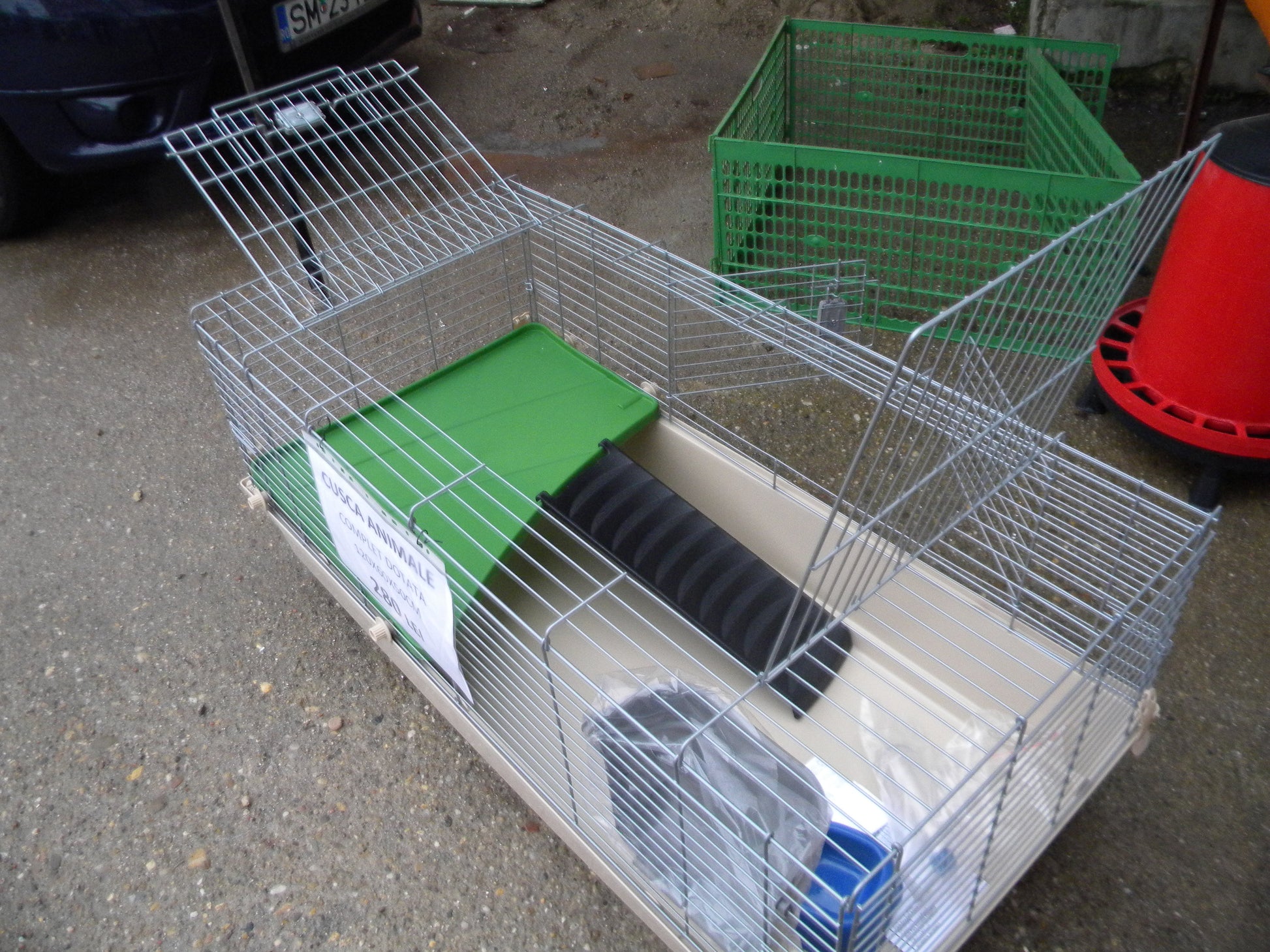 Cusca transport/crestere 75x47x43 cm pliabila, confectionata din plasa de sarma zincata plasticata de 2 mm si tava de plastic. Este complet dotata cu: