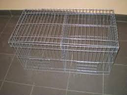 Cusca de expozitie animale/pasari 2 compartimente pliabila. Confectionata din panouri bordurate de plasa sudata cu sarma zincata de 4 mm cu bare tansversale de 3mm. Este ideala pentru expunerea la expozitii in piete si târguri al porumbeilor, gainilor, iepurilor etc. Are usa de acces in partea de sus, cu blocare.